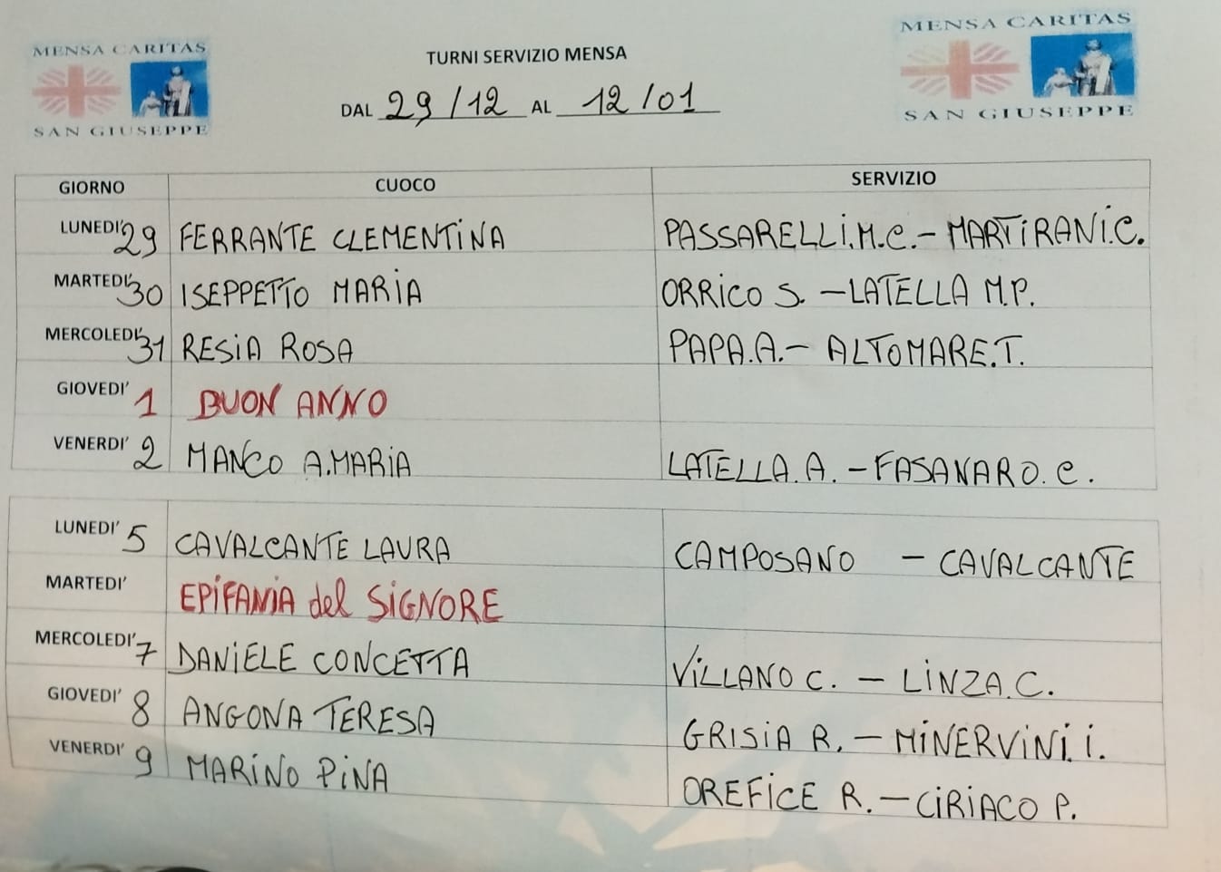 TURNI SERVIZIO ALLA MENSA DAL 21 NOVEMBRE AL 02 Dicembre 2022 |