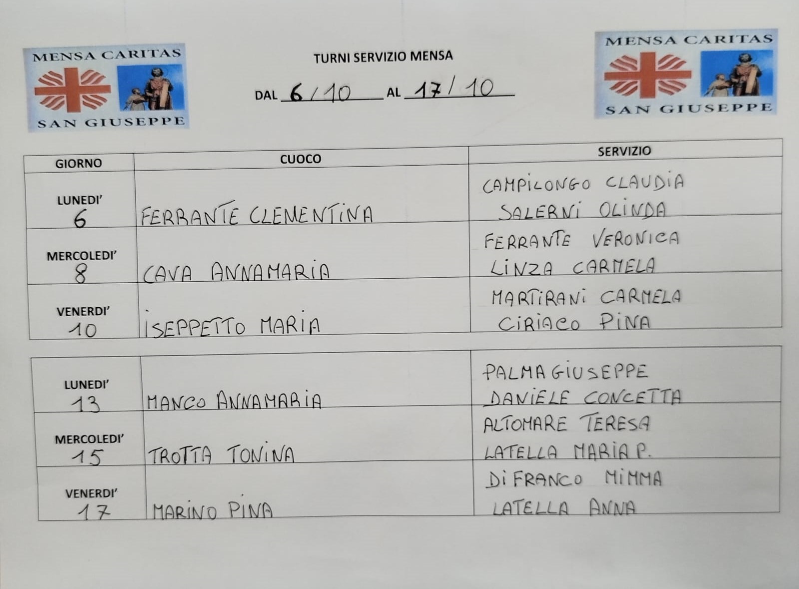 10 ottobre 2022 con l'aiuto di Dio e la collaborazione di tanti si riprende con entusiasmo e con coraggio al servizio di chi bussa alla nostra porta e al nostro cuore.