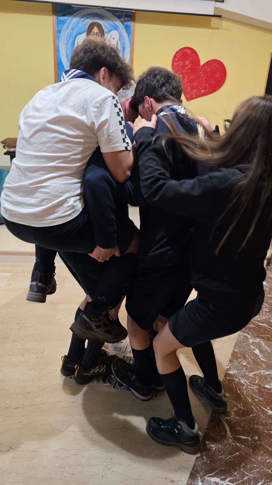 23 febbraio - Della serie tutto è contrassegnato dalla gioia dei nostri ragazzi, che ci hanno donato la loro gioia di esserci e la volontà di trasmetterlo con l'entusiasmo che appartiene alla loro età. Devo ammettere che sono stati insuperabili nella voglia di coinvolgere in quello che hanno inteso proporre sul valore della pace, ma quello che immediatamente è stato spettacolare è la loro voglia di esserci e di vivere tutto con la gioiosità di chi ne ha bisogno, anche se i contenuti alcune volte erano orientati alla sofferenza e al dolore, poi intervenivano loro e tutto tornava ad essere sereno. La foto che ho caricato ritengo esprima bene la bellezza di ciò che abbiamo vissuto e che i gruppi hanno inteso proporre per far vivere un moemnto di entusiamo per la vita e per guardare con fiducia al futuro, che loro rappresentano. E' stata anche una occasione, di far incontrare le diverse anime educative della comunità, che il Signore ci ha affidato e che non smette mai di stupire per la bellezza che riesce ad esprimere e che non sempre riusciamo a comunicare. Insomma tutto bello, semplicemente perché dono di Dio.